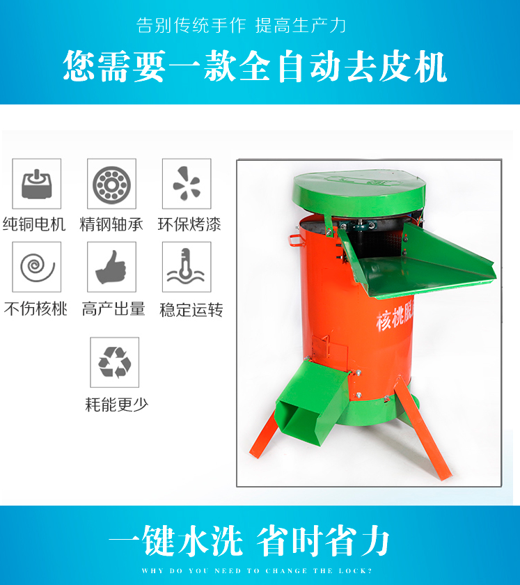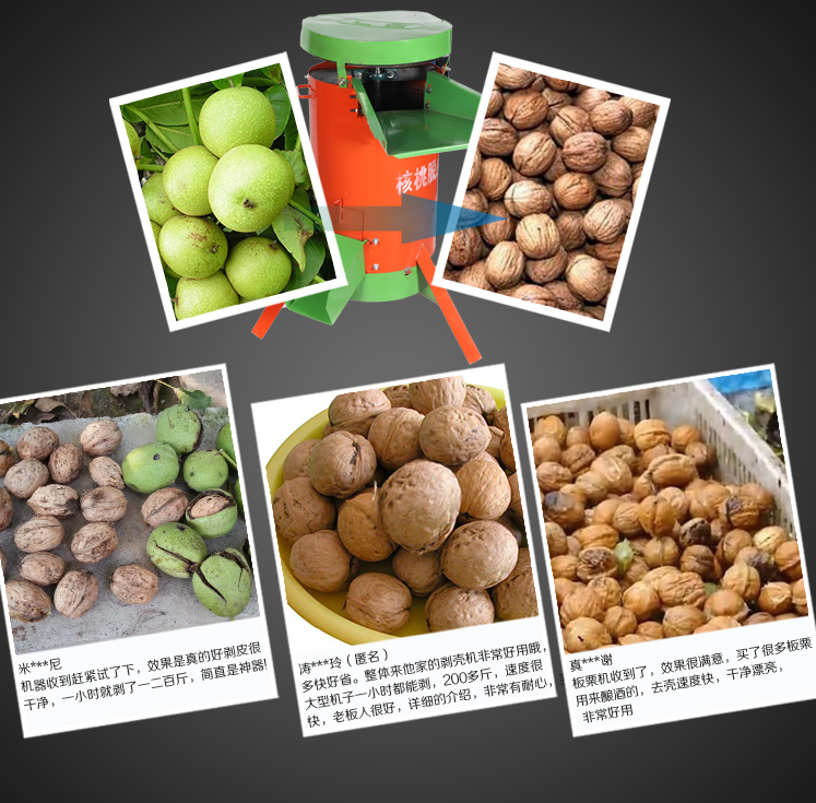青核桃脫皮機為新一代集青核桃脫皮、粗洗、精洗為一體的核桃加工機械,獨特創新的結構設計,使用起來剝殼效果非常好,大大減輕核桃脫皮清洗勞動強度,省時省工,還提高了核桃品質和商品率。