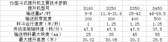 TD斗式提升機由提升機上、下鏈輪,皮帶,挖斗,絲桿,進出料口,箱體,電機減速機等組成,具有輸送量大,提升  高度高,運行平穩可靠,壽命長顯著優點,本提升機適于輸送粉狀,粒狀及小塊狀的無磨琢性及磨琢性小的物料,如  :煤、水泥、石塊、砂、粘土、礦石等。